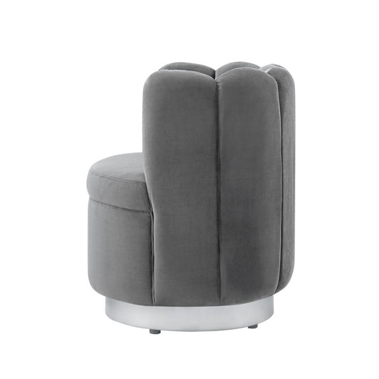27" Light Gray And Silver Velvet Tufted Swivel Barrel Chair