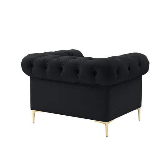 34" Black And Gold Faux leather Tufted Chesterfield Chair