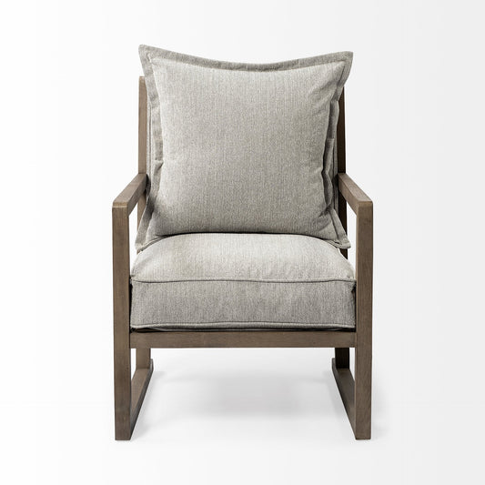 Wooden Accent Chair With Ash Gray Cushions
