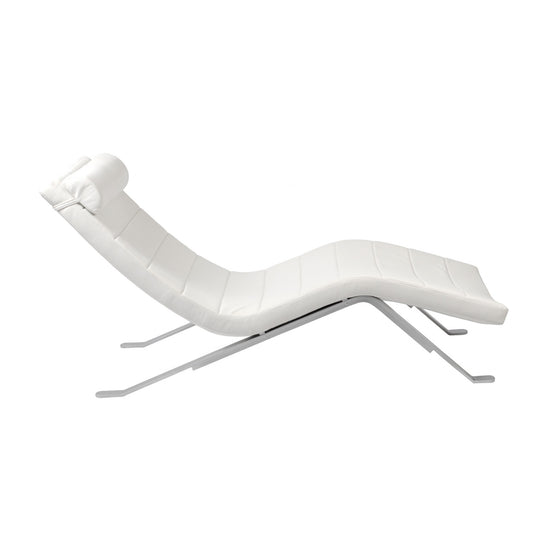 White Faux Leather and Chrome Wavy Chaise Lounge Chair