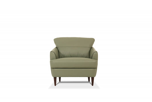 35" Pesto Green Genuine Leather And Black Tufted Arm Chair
