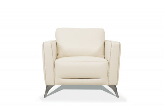 43" Gray and Bone Faux Leather Tufted Wingback Chair