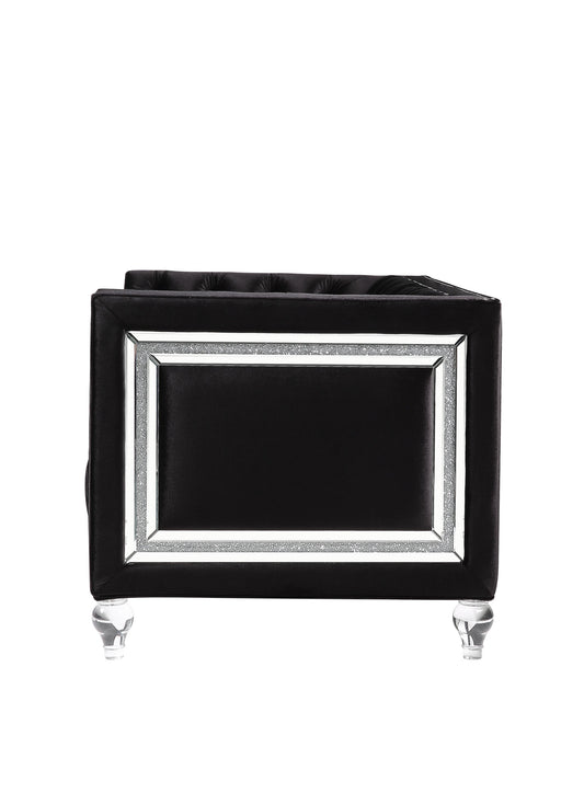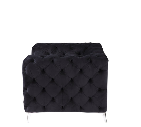 41" Charcoal Velvet And Black Tufted Arm Chair