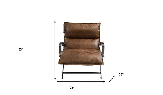 28" Brown Top Grain Leather And Steel Lounge Chair