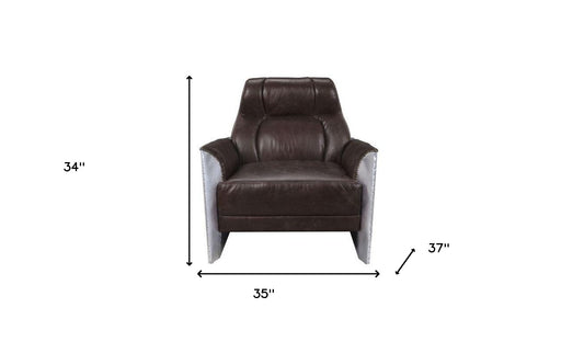 35" Espresso Top Grain Leather And Steel Patchwork Club Chair