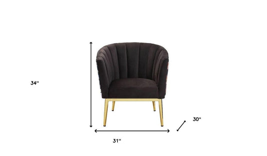 30" Gray Velvet And Gold Solid Color Barrel Chair