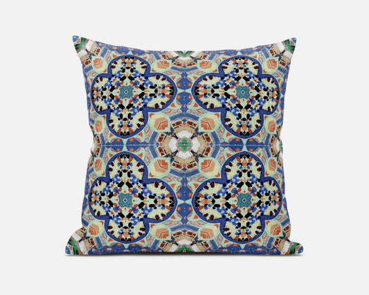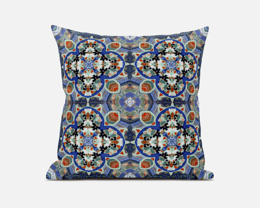 18" Blue Orange Cloverleaf Boho Suede Throw Pillow