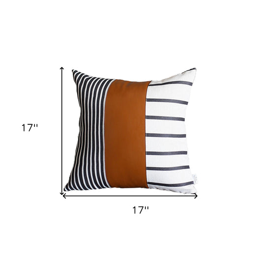 Set Of Two 17" X 17" Brown and White Faux Leather Striped Zippered Pillow Cover