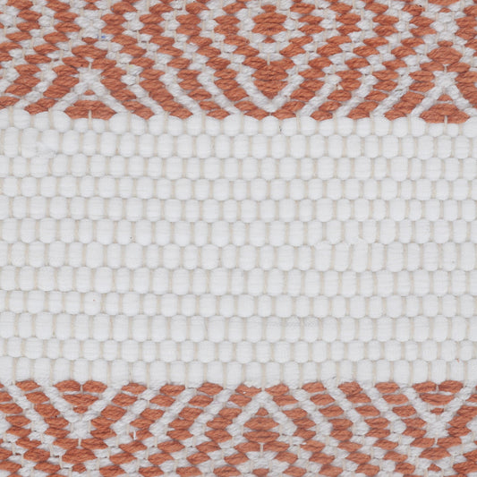 20" X 20" Orange And White 100% Cotton Geometric Zippered Pillow