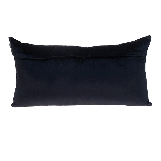 Navy Blue and Silver Quilted Colorblock Velvet Lumbar Throw Pillow