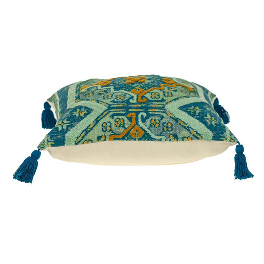 Blue and Gold Geo Velvet Throw Pillow with Gold Tassels