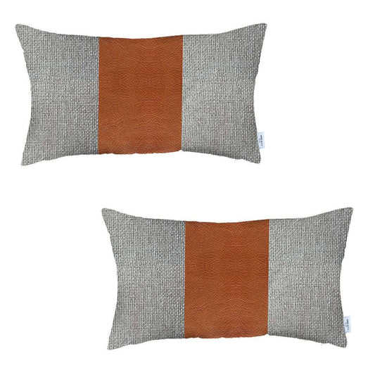 Set Of 2 Brown Faux Leather Lumbar Pillow Covers