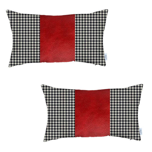 Set Of 2 Red Houndstooth Lumbar Pillow Covers