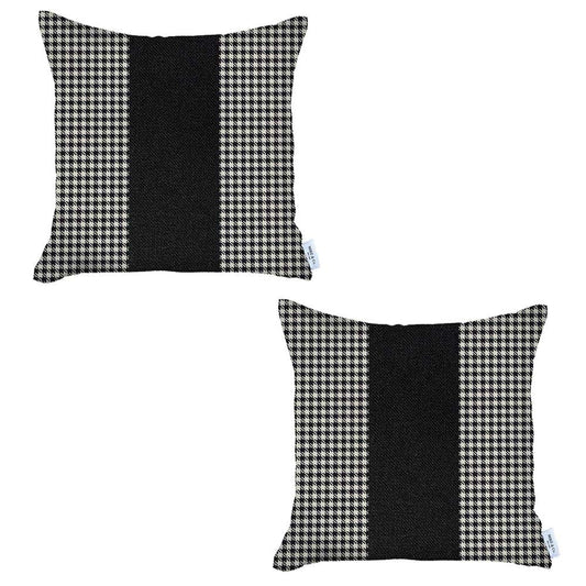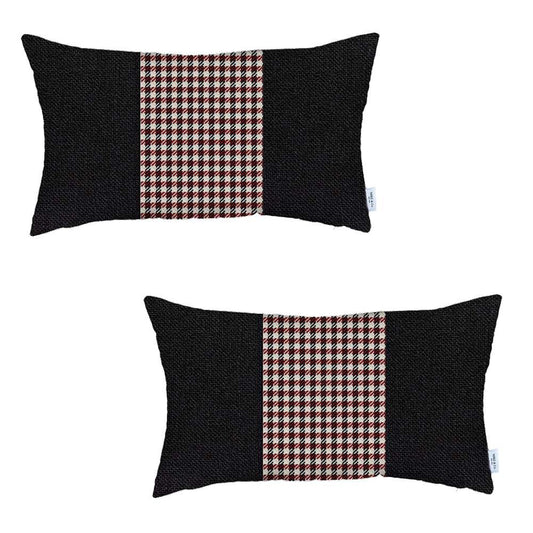 Set Of 2 Black Mid Houndstooth Lumbar Pillow Covers