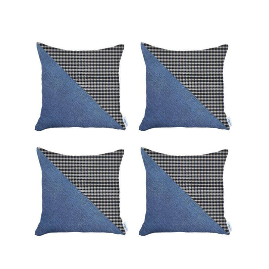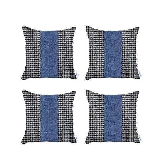 Set Of 4 Black And Tan Houndstooth Pillow Covers