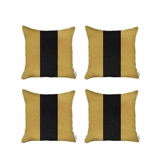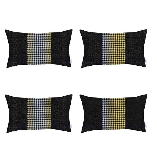 Set Of 4 Yellow And Black Center Lumbar Pillow Covers