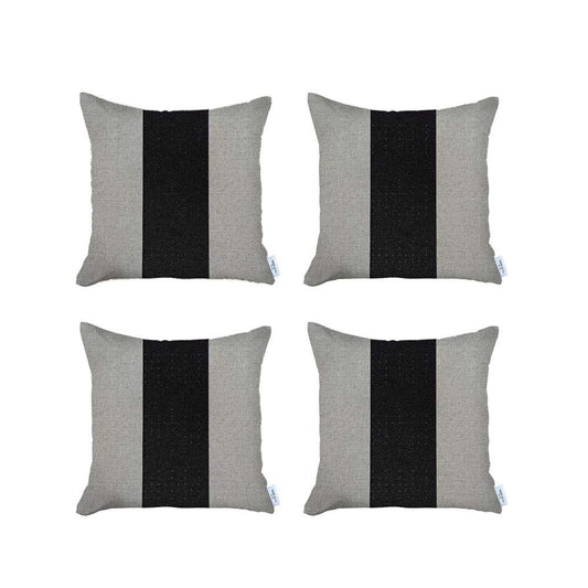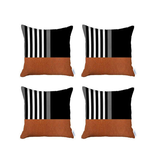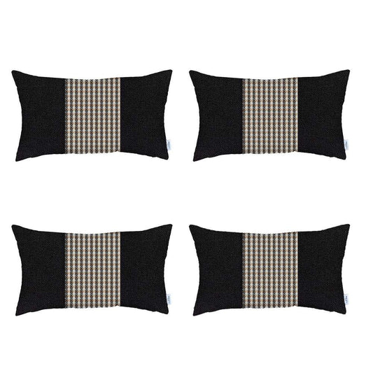 Set Of 4 Tan And Black Center Lumbar Pillow Covers
