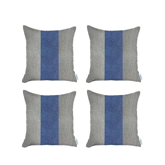 Set Of 4 Ivory And Blue Center Pillow Covers