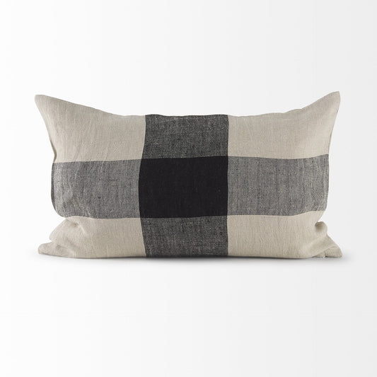 Black And Beige Plaid Lumbar Accent Pillow Cover