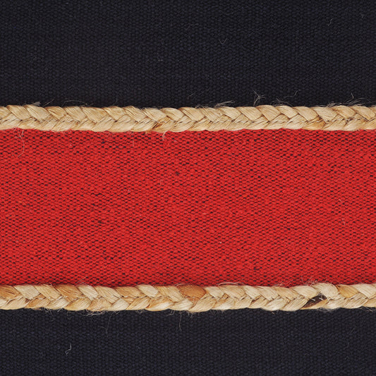 24" X 24" Navy Red And Tan 100% Cotton Striped Zippered Pillow