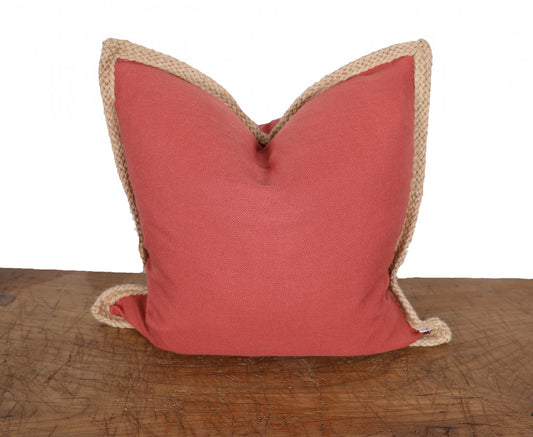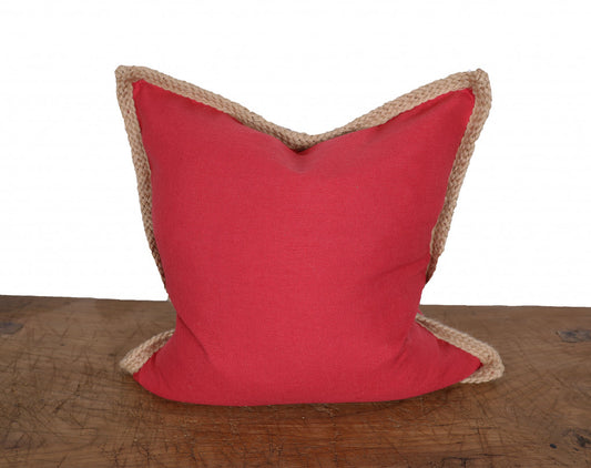 24" X 24" Brown and Red Polyester Zippered Pillow with Jute Trim