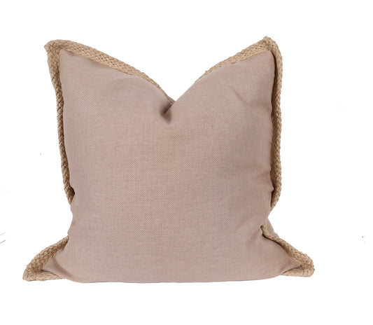 24" X 24" Beige and Brown Polyester Zippered Pillow with Jute Trim