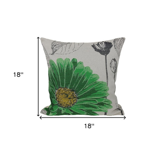 18"x18" Green Polyester and Cotton Blend Floral Zippered Pillow