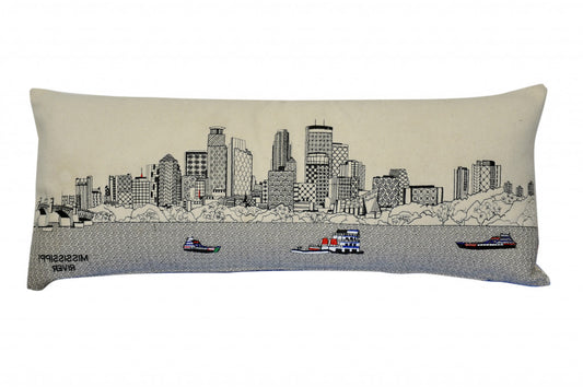 35" White Minneapolis Daylight Skyline Lumbar Decorative Pillow