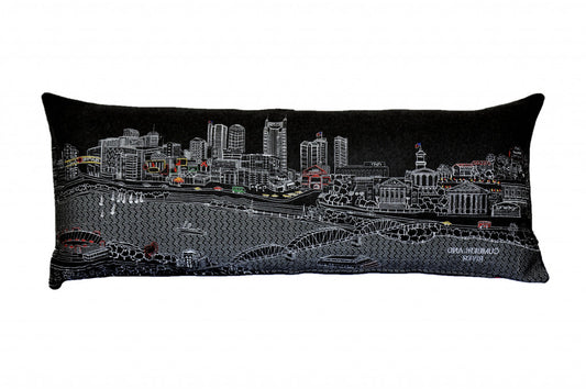 35" Black Nashville Nighttime Skyline Lumbar Decorative Pillow