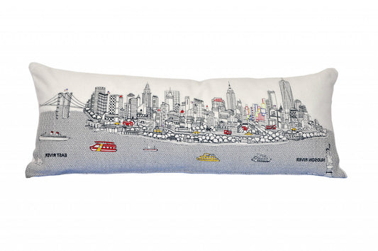 35" White NYC Daylight Skyline Lumbar Decorative Pillow