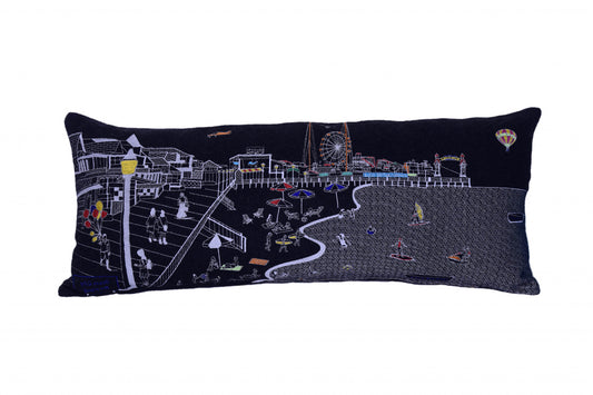 35" Black Ocean City Maryland Nighttime Skyline Lumbar Decorative Pillow