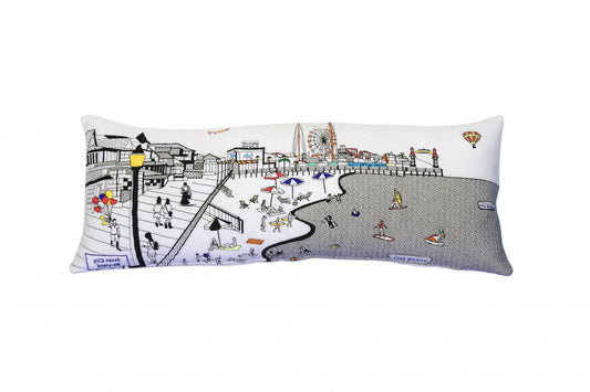 35" White Ocean City Maryland Daylight Skyline Lumbar Decorative Pillow