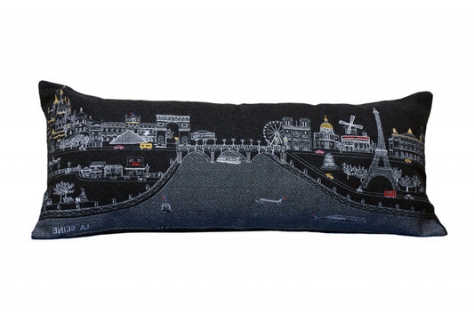 35" Black and White Paris Nighttime Skyline Standard Lumbar Decorative Pillow