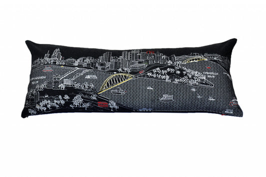 35" Black Pittsburgh Nighttime Skyline Lumbar Decorative Pillow