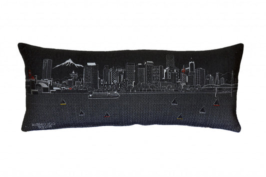 35" Black Portland Nighttime Skyline Lumbar Decorative Pillow