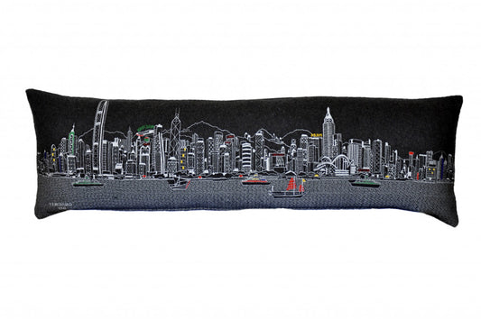 45" Black Hong Kong Nighttime Skyline Lumbar Decorative Pillow