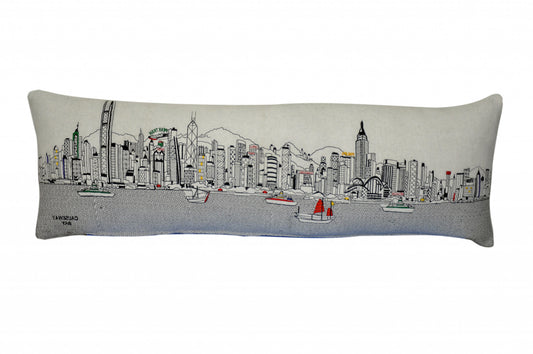 45" White Hong Kong Daylight Skyline Lumbar Decorative Pillow