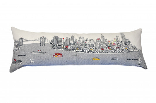 45" White Chicago Daylight Skyline Lumbar Decorative Pillow