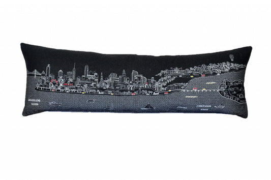 45" Black Chicago Nighttime Skyline Lumbar Decorative Pillow