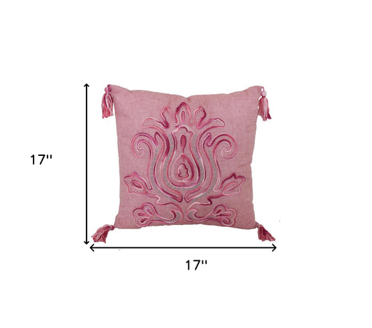 17" X 17" Light Pink Polyester Zippered Pillow With Tassels