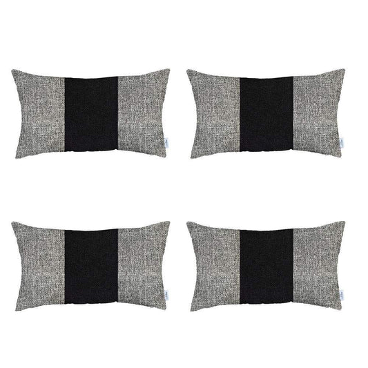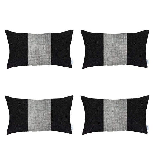 Set Of Four 20" X 12" Black And Grey Geometric Zippered Handmade Polyester Lumbar Pillow