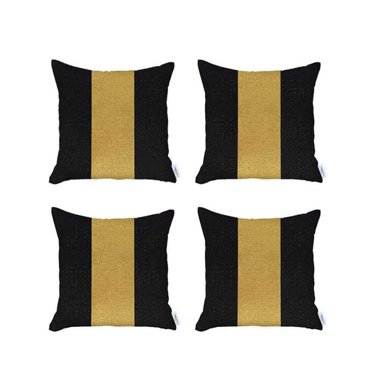 Set Of Four 18" X 18" Black And Yellow Geometric Zippered Handmade Polyester Throw Pillow