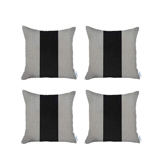 Set Of Four 18" X 18" Black And Grey Abstract Zippered Handmade Polyester Throw Pillow