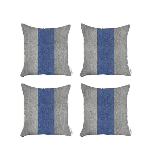 Set Of Four 18" X 18" Blue Striped Zippered Handmade Polyester Throw Pillow