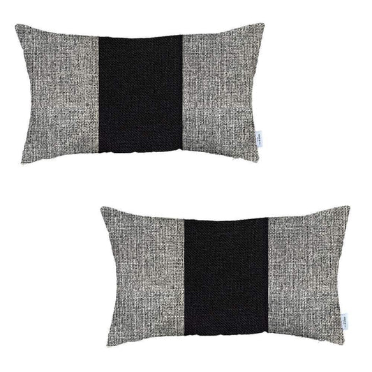 Set Of Two 20" X 12" Grey And Black Geometric Zippered Handmade Polyester Lumbar Pillow