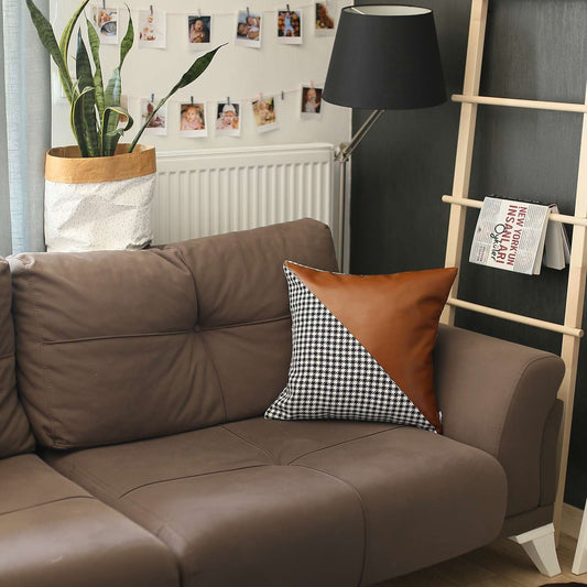 18" X 18" Brown And Black Houndstooth Zippered Handmade Polyester Throw Pillow Cover