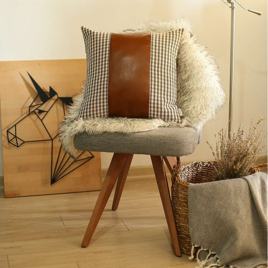 18" X 18" Brown Houndstooth Zippered Handmade Polyester Throw Pillow Cover