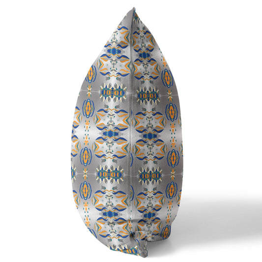 16" X 16" White And Blue Stencil Blown Seam Suede Throw Pillow