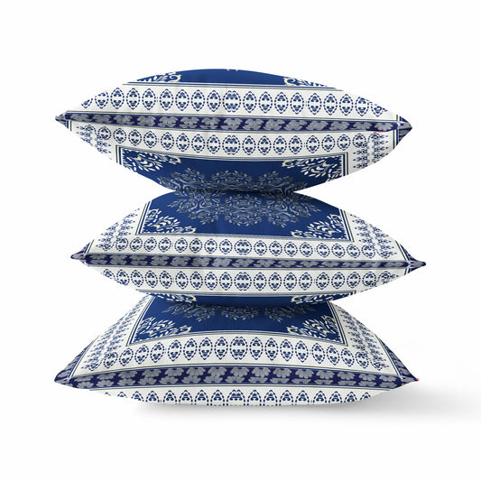 16" X 16" Blue Light Blue Geometric Zippered Suede Throw Pillow