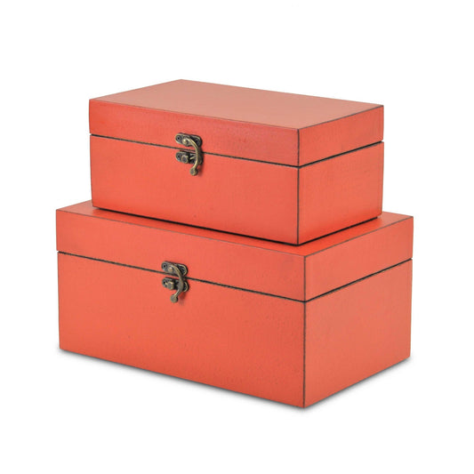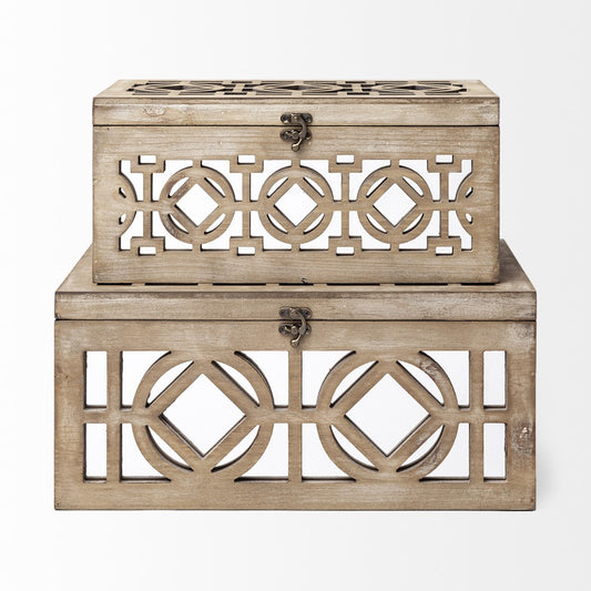 Set Of Two Brown Wooden Boxes With Metal Detailing